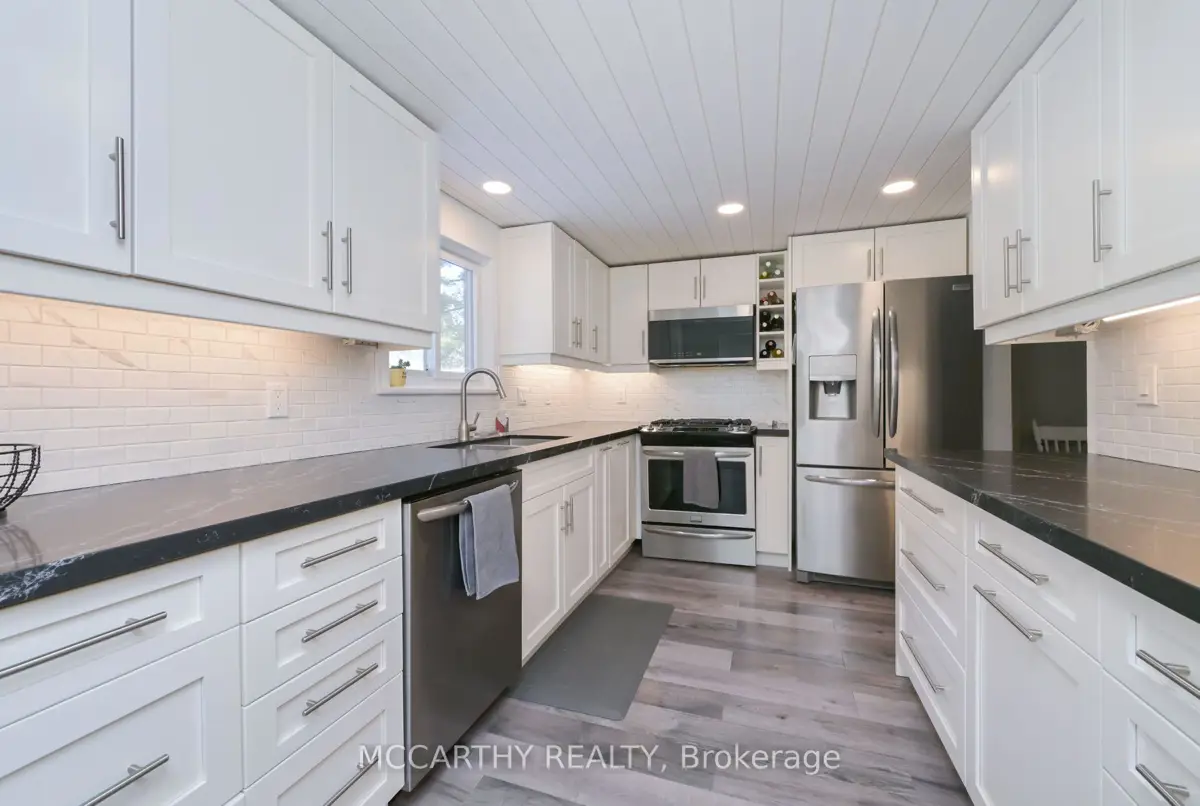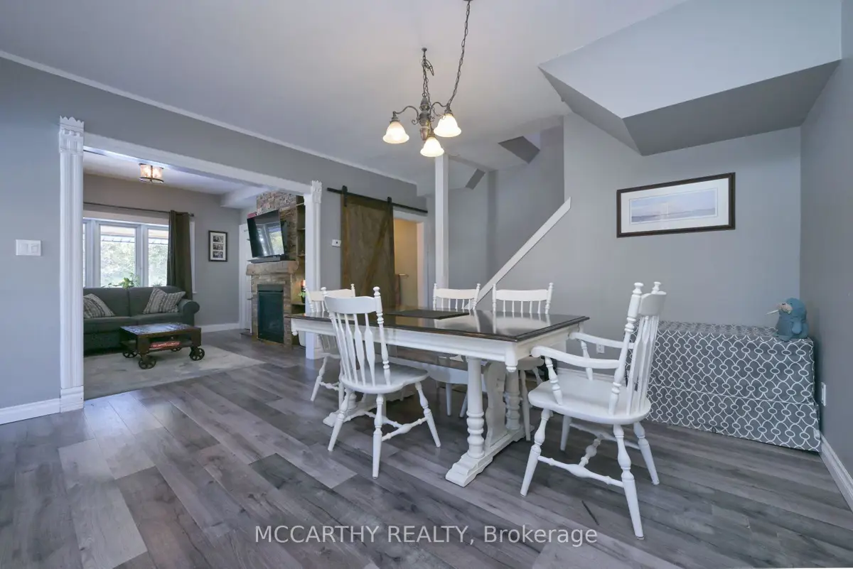 Affordable, Beautiful, Private Country living. This beautifully updated detached 1 1/2-storey home in pretty Riverview, Melancthon. with 3 bedrooms, 2 baths, & main floor laundry. Open-concept design connects the dining and the living room with a cozy built-in propane fireplace. A renovated kitchen has new appliances, a gas stove, an overhead microwave/fan, and quartz countertops. Recent upgrades include New windows, siding, insulation, plumbing, electrical, heating, furnace, roof, fascia, and soffit. Spring 2025 All New Septic system, tank and weeping bed. Convenient back door entry with stairs to Basement. New paving stone patio at the back door. This traditional 1.5 storey house is Like New, all main items all new, ready for a family to enjoy, at a location close to Shelburne, Pretty Riverview, close to the River and with Peaceful village life. This move-in-ready home offers modern comfort in a private, peaceful setting. Large Lot Surrounded by mature trees in the quiet Hamlet of Riverview, New 16 x 12 shed with 10ft ceiling used as workshop, storage or Man Cave, new gravel driveway, Plenty of Parking for 6 plus vehicles. Come and see this great rural village home.