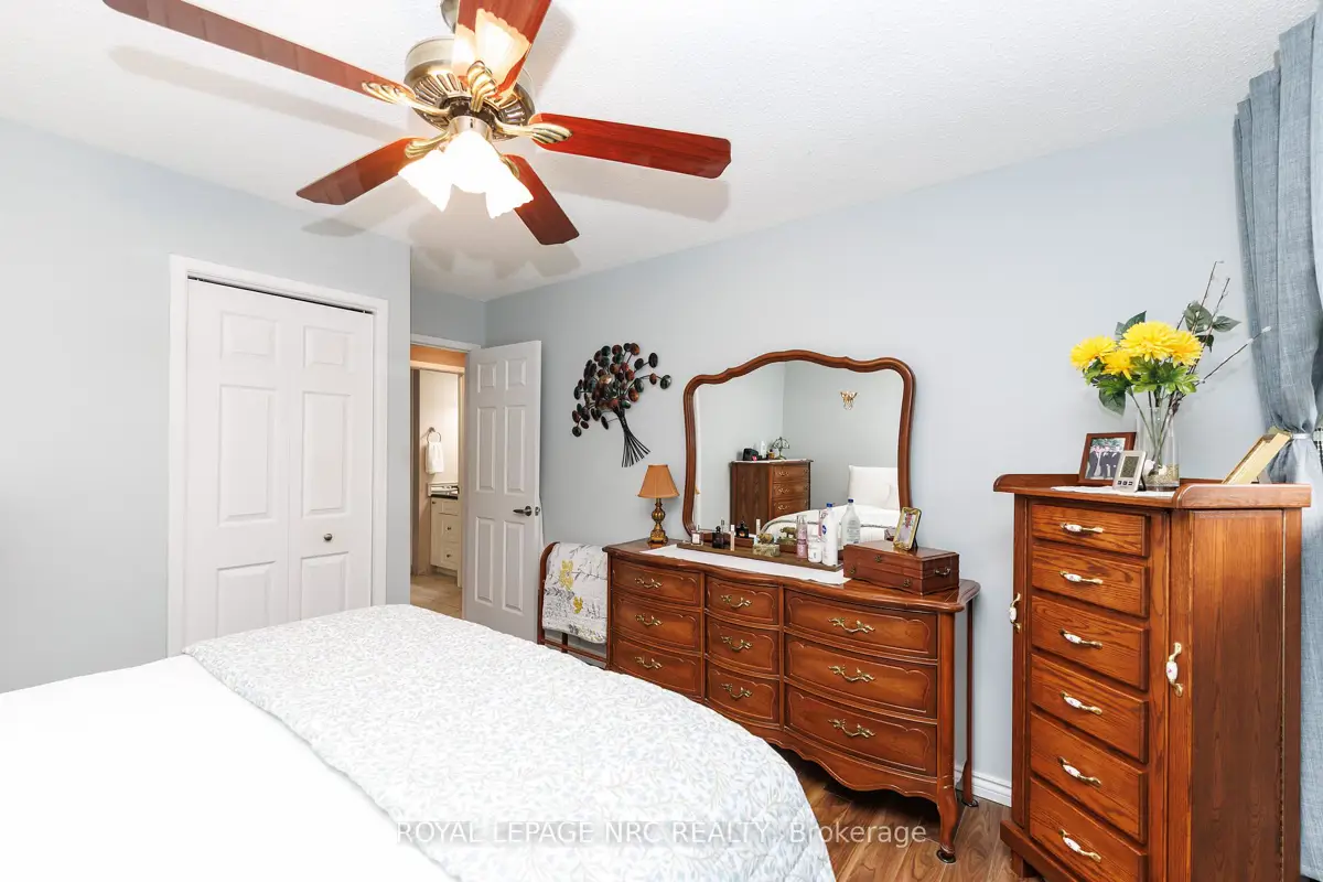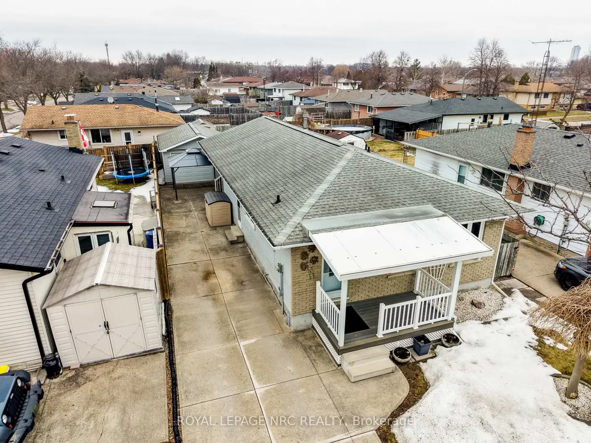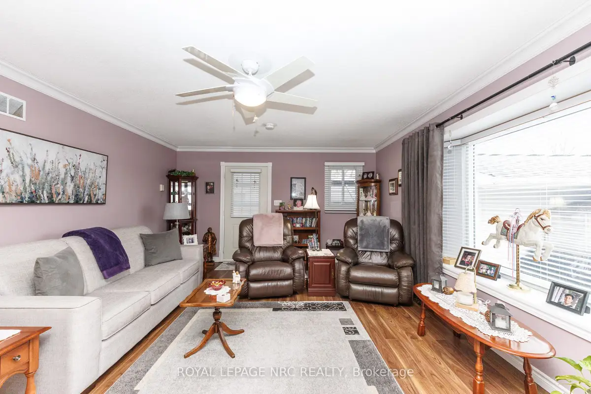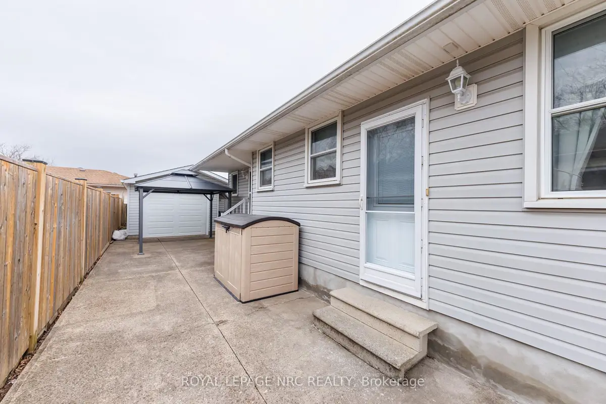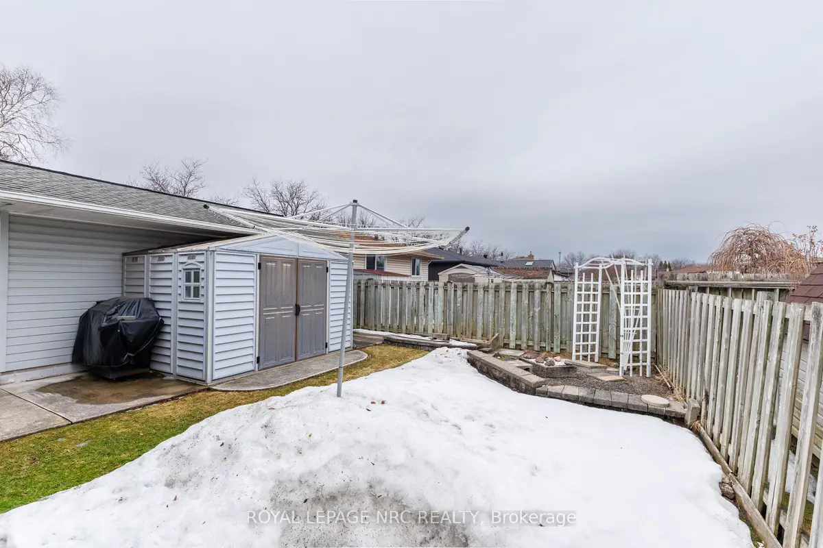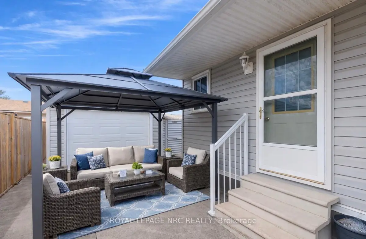 Welcome to this immaculate, one-owner, 1245 sqft (above grade+basement) bungalow that clearly reflects pride of ownership. This well-maintained home has been lovingly cared for and offers a clean, comfortable living space throughout. The main floor welcomes you with a bright front living room and dining room combination that flows into a functional galley kitchen with an additional dining area. Two bedrooms, a four-piece bathroom plus an oversized storage closet/office area continues through to the rear of the home where you will find a beautiful addition that offers a bright and spacious extra living area featuring a cozy natural gas fireplace and a separate entrance. This versatile space could easily serve as a family room, extended living space, or a generous primary suite retreat. The full, dry basement provides excellent additional living space and offers in-law potential with its separate entrance. The lower level includes an additional bedroom, full bathroom, office, recreation area, workshop space, and laundry. Outside, the private concrete driveway accommodates parking for three vehicles and leads to a custom-built garage constructed with exceptional attention to quality and durability. The exterior has been updated with newer siding, soffits, and eavestroughs, along with a recently built covered front porch finished with low-maintenance composite decking. The backyard is perfect for relaxing or entertaining, featuring a concrete patio and a built-in screened gazebo ideal for enjoying warm summer evenings while staying protected from the elements. A large storage shed provides additional outdoor storage. Located in a quiet, family-friendly neighbourhood close to the QEW, Costco, shopping, and everyday amenities. Conveniently situated near parks, schools, walking trails, Niagara's popular tourist attractions, and the new upcoming hospital. Check out the video tour and floor plans!