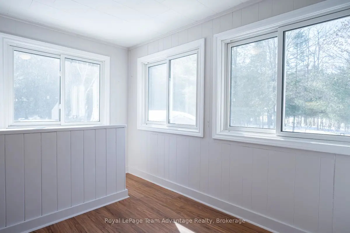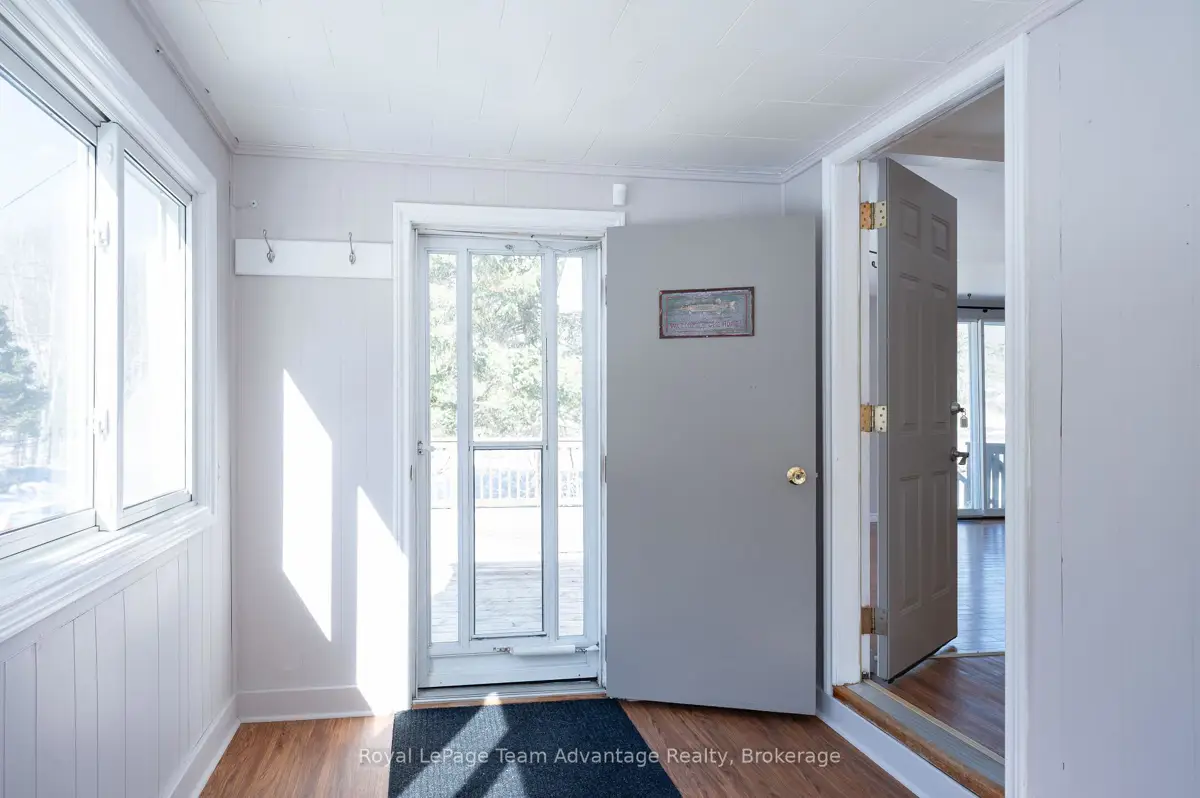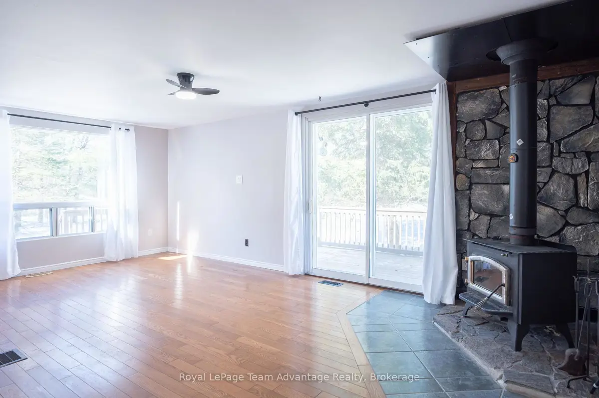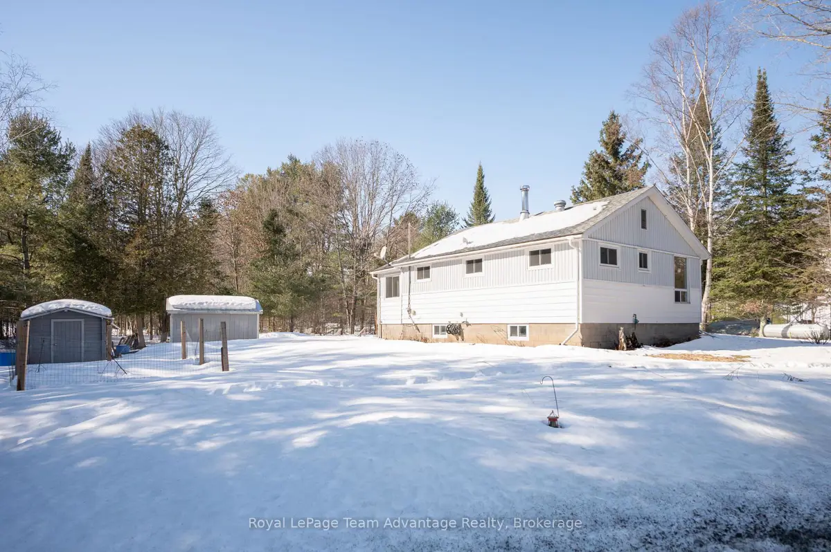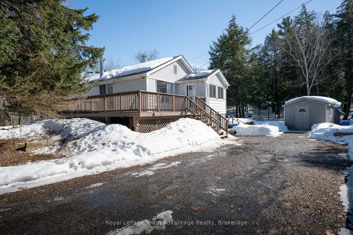 Welcome to 2 Deep Bay Drive in the Bayview area of Carling. Set on a nicely landscaped level corner lot with mature trees this cozy home is ideal as an affordable cottage getaway or a comfortable four- season residence. The bright living room features oak flooring, a WETT -certified Elmira wood stove and a walkout to a spacious L-shaped sundeck (24'6" x 9'6" and 11' x 8') - perfect for relaxing or entertaining. The recently renovated eat-in kitchen offers updated cabinetry and includes an electric fridge and gas stove. The home offers three bedrooms and a four-piece bathroom. The basement provides a recreation room, laundry and utility area and a new propane furnace ensures efficient year-round heating. Two sheds offer ample storage. Located approximately 250 meters from a beautiful association beach with legal access to this beach and five additional beaches and just 15 minutes from Downtown Parry Sound this well maintained property offers privacy, practical updates and excellent access to the outdoors.
