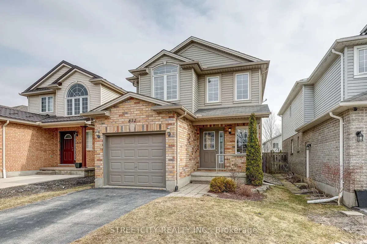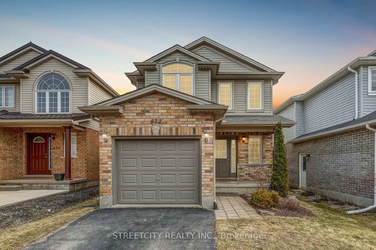 Welcome home to 872 Bradshaw Crescent, a well maintained 2- storey home tucked away on a quiet crescent in the sought-after Stoney Creek neighbourhood of North London. This 3 bedroom home features a bright open-concept main floor with hardwood flooring, decorative columns, California shutters, and a cozy gas fireplace that anchors the living space. The kitchen offers plenty of cabinetry, generous counter space, and a functional island that flows into the dining area, making everyday meals and hosting easy. Upstairs, you'll find upgraded hardwood floors throughout, as well as a spacious primary bedroom complete with its own ensuite bathroom, along with two additional bedrooms. The unfinished basement has a full bathroom rough in and tons of space...Think rec room, more bedrooms, a home office, or extra living space when you're ready for it! Outside, enjoy a landscaped backyard with a deck, gardens, and play space. This home is located just walking distance to Mother Teresa Catholic Secondary school, parks, walking trails, and the Stoney Creek Community Centre (home to the YMCA, a public library and a community pool.) The home is also close to bus routes, and only a short drive to shopping, dining, and everything else Masonville has to offer. You won't be disappointed, so book a tour today!