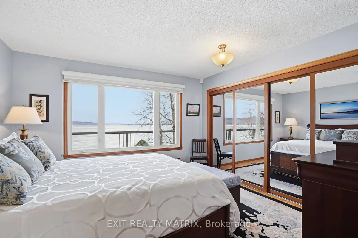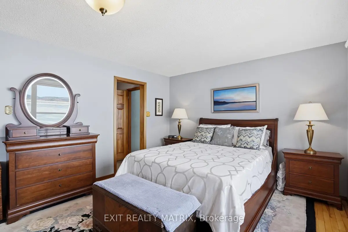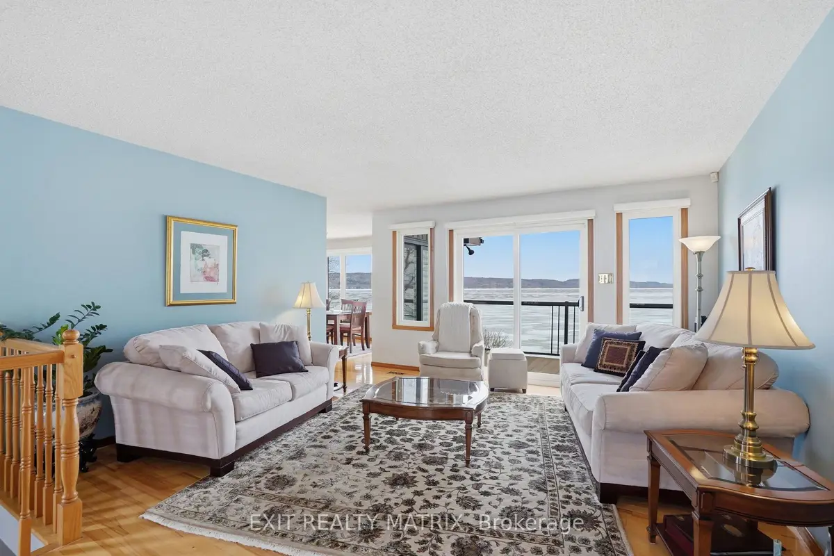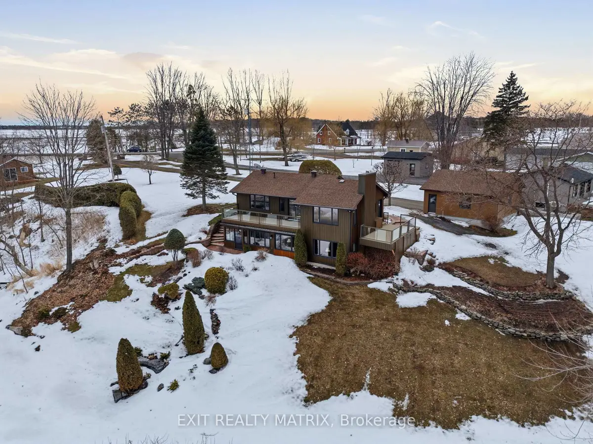 **OPEN HOUSE SUNDAY 1-3PM. Nestled on one of the most impressive waterfront lots in the L'Orignal area, this exceptional property offers over 360 feet of waterfront frontage along the Ottawa River. The beautifully landscaped grounds are truly one of a kind, featuring retaining walls, perennial flower gardens, mature trees, and expansive usable waterfront space. Enjoy direct water access with your private boat launch with ramps, as well as hardscaped steps leading into the water where a sandy river floor awaits-perfect for swimming, boating, and making the most of waterfront living. A long driveway leads to a pristine and well-maintained bungalow with walkout basement, complemented by a detached double car garage and a detached workshop, ideal for hobbyists, storage, or additional workspace. The main floor of the home offers a beautifully updated eat-in kitchen with granite countertops, a large island, and ample cabinetry, opening into a generously sized family room designed to take full advantage of the stunning water views. The main level also features a spacious primary bedroom and a full bathroom with ceramic walk-in shower and soaker tub, each boasting large, bright windows that capture breathtaking views of the river and surrounding landscape. The fully finished walkout lower level expands the living space with a large family room, a second bedroom, and a separate private office. French doors lead from the office into a sunroom, creating the perfect space to relax while enjoying the peaceful waterfront setting year-round. In addition to the ground level exterior sitting area, this home offers two composite balcony with glass railings. Energy efficient home heated and cooled by a heat pump and a wood pellet stove for additional comfort. A rare opportunity to own an extraordinary waterfront property combining privacy, natural beauty, and thoughtfully designed outdoor living spaces-all just minutes from the village of L'Orignal and a short drive to Hawkesbury.