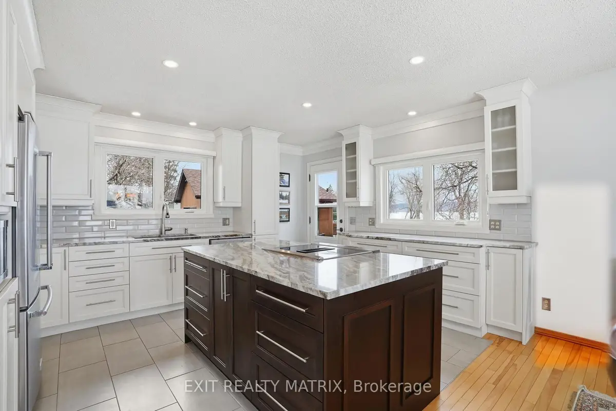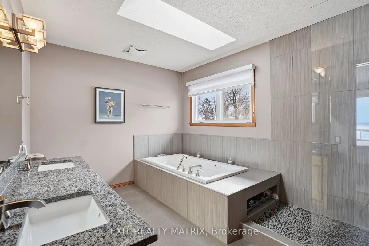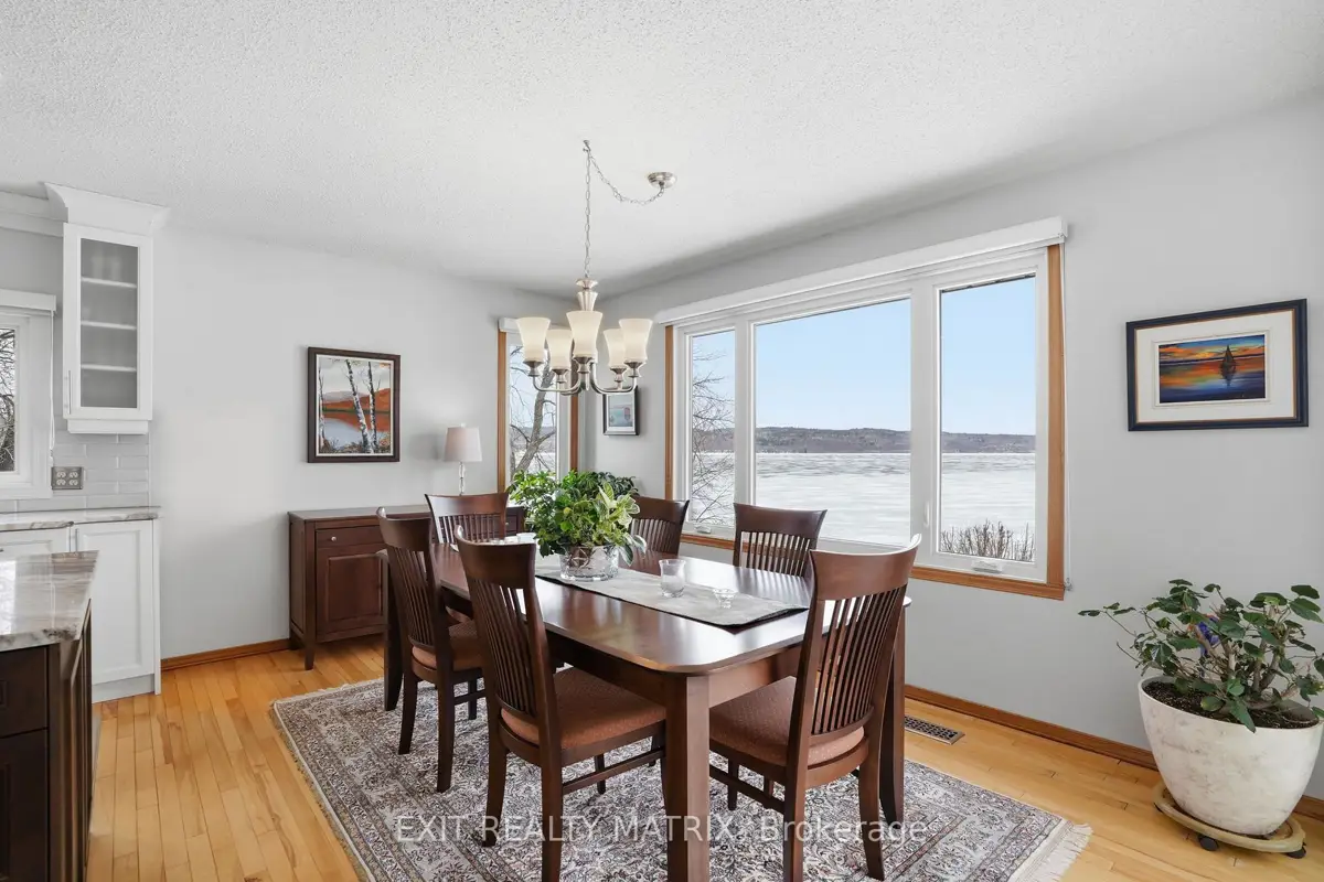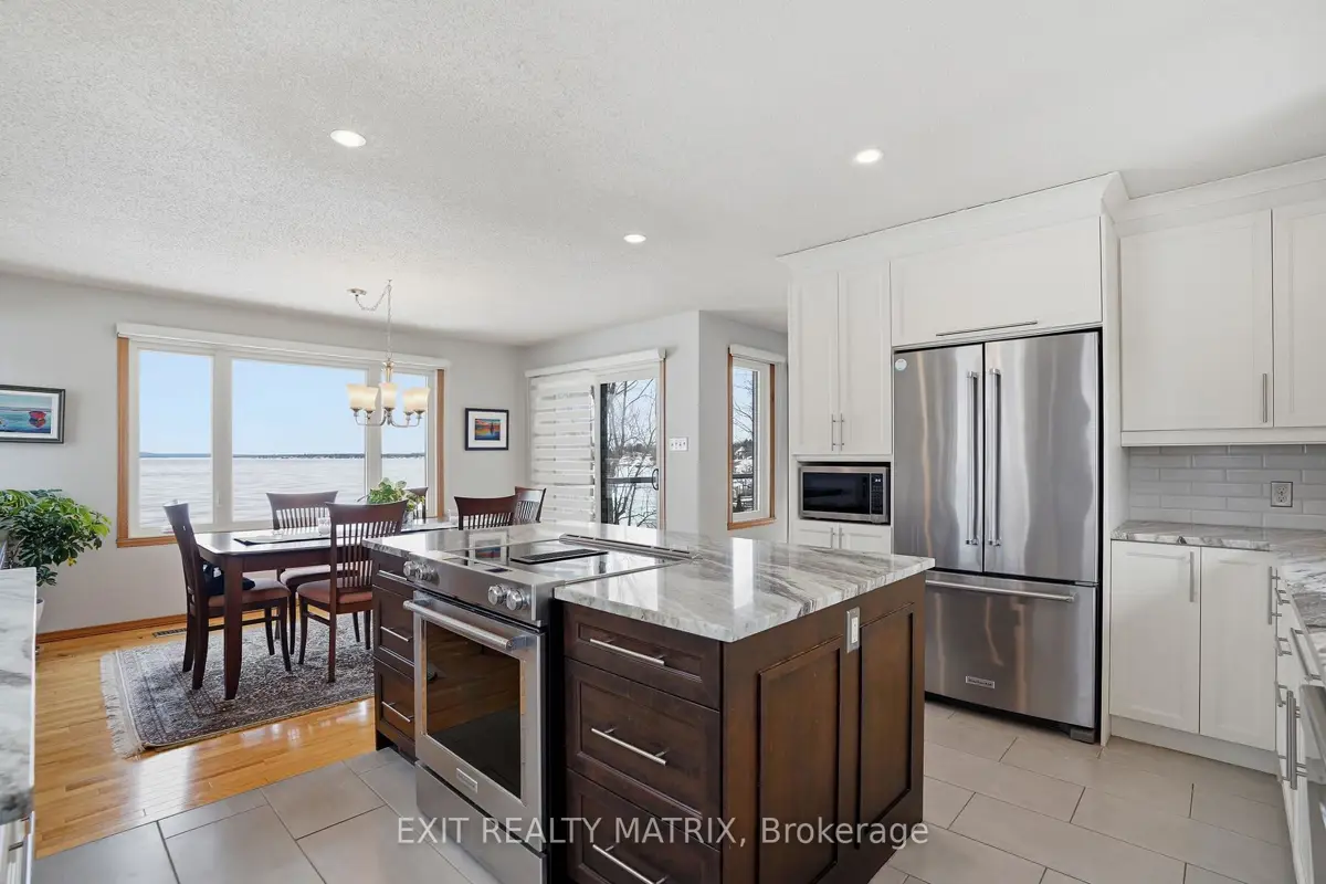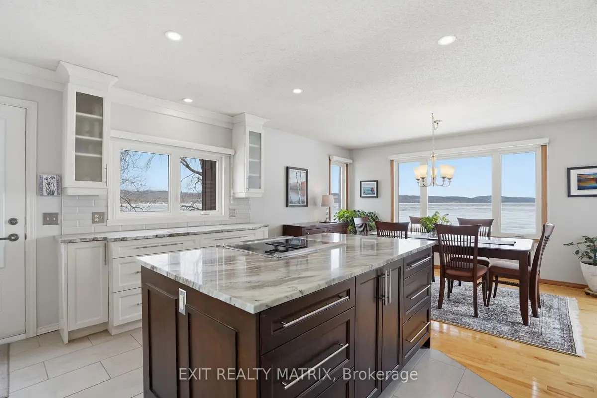 **OPEN HOUSE SUNDAY 1-3PM. Nestled on one of the most impressive waterfront lots in the L'Orignal area, this exceptional property offers over 360 feet of waterfront frontage along the Ottawa River. The beautifully landscaped grounds are truly one of a kind, featuring retaining walls, perennial flower gardens, mature trees, and expansive usable waterfront space. Enjoy direct water access with your private boat launch with ramps, as well as hardscaped steps leading into the water where a sandy river floor awaits-perfect for swimming, boating, and making the most of waterfront living. A long driveway leads to a pristine and well-maintained bungalow with walkout basement, complemented by a detached double car garage and a detached workshop, ideal for hobbyists, storage, or additional workspace. The main floor of the home offers a beautifully updated eat-in kitchen with granite countertops, a large island, and ample cabinetry, opening into a generously sized family room designed to take full advantage of the stunning water views. The main level also features a spacious primary bedroom and a full bathroom with ceramic walk-in shower and soaker tub, each boasting large, bright windows that capture breathtaking views of the river and surrounding landscape. The fully finished walkout lower level expands the living space with a large family room, a second bedroom, and a separate private office. French doors lead from the office into a sunroom, creating the perfect space to relax while enjoying the peaceful waterfront setting year-round. In addition to the ground level exterior sitting area, this home offers two composite balcony with glass railings. Energy efficient home heated and cooled by a heat pump and a wood pellet stove for additional comfort. A rare opportunity to own an extraordinary waterfront property combining privacy, natural beauty, and thoughtfully designed outdoor living spaces-all just minutes from the village of L'Orignal and a short drive to Hawkesbury.