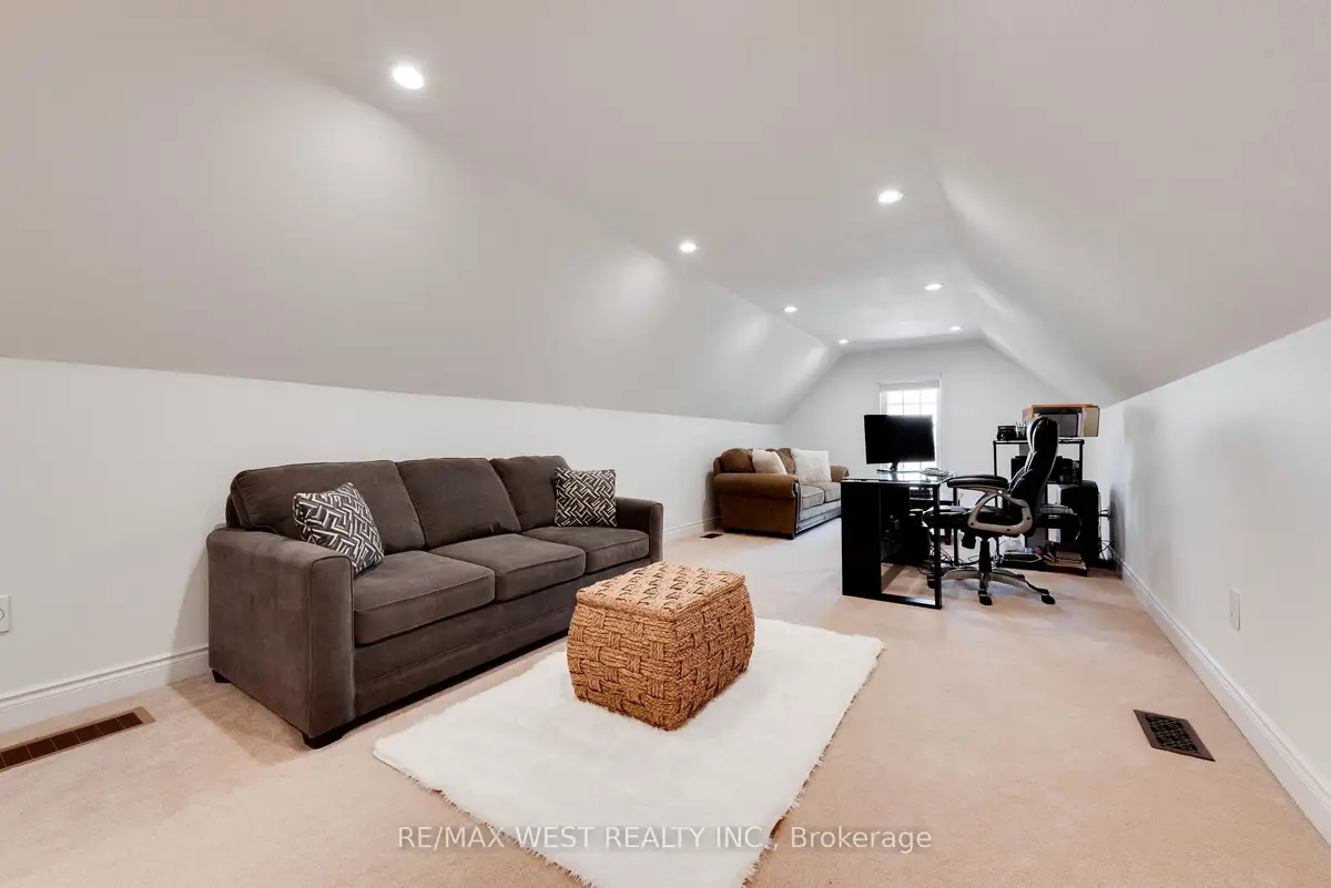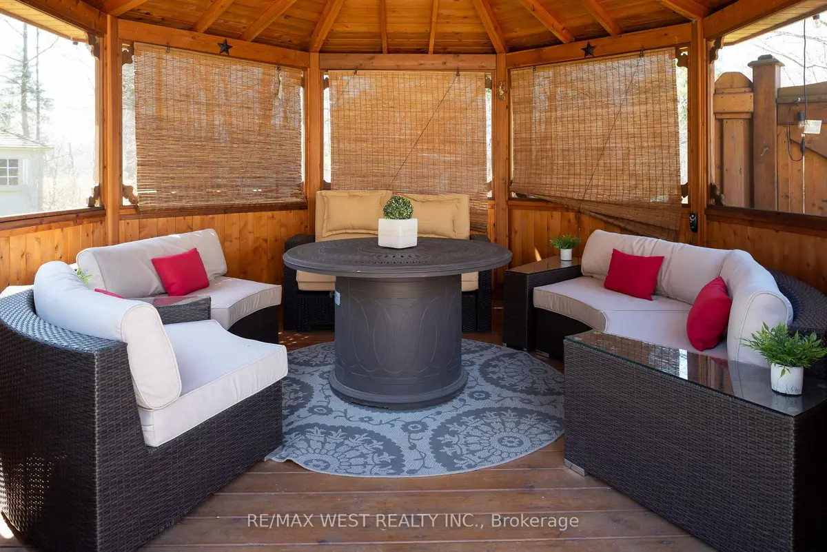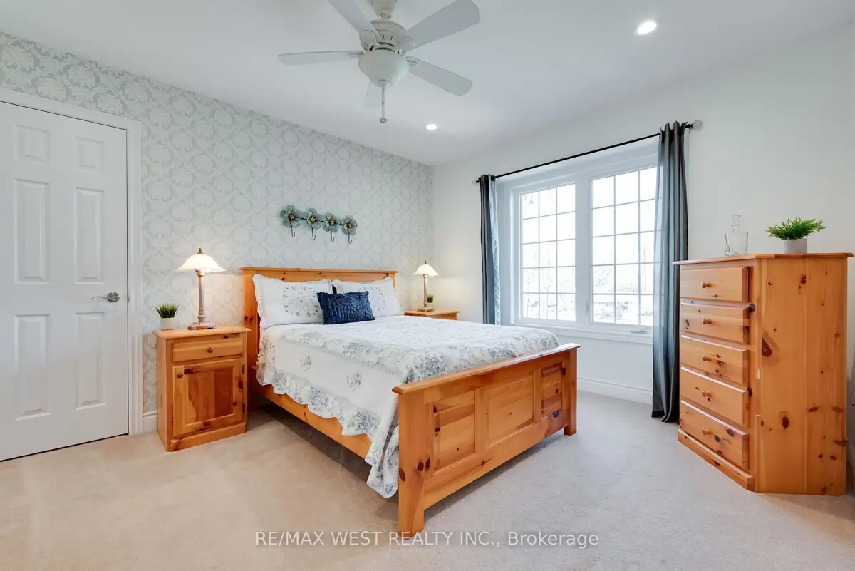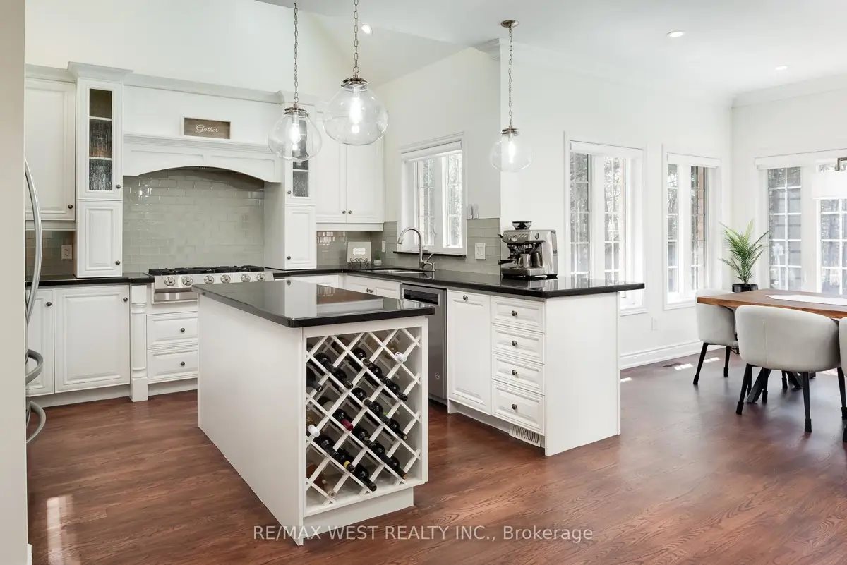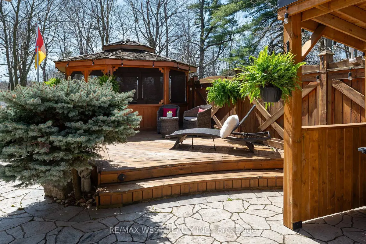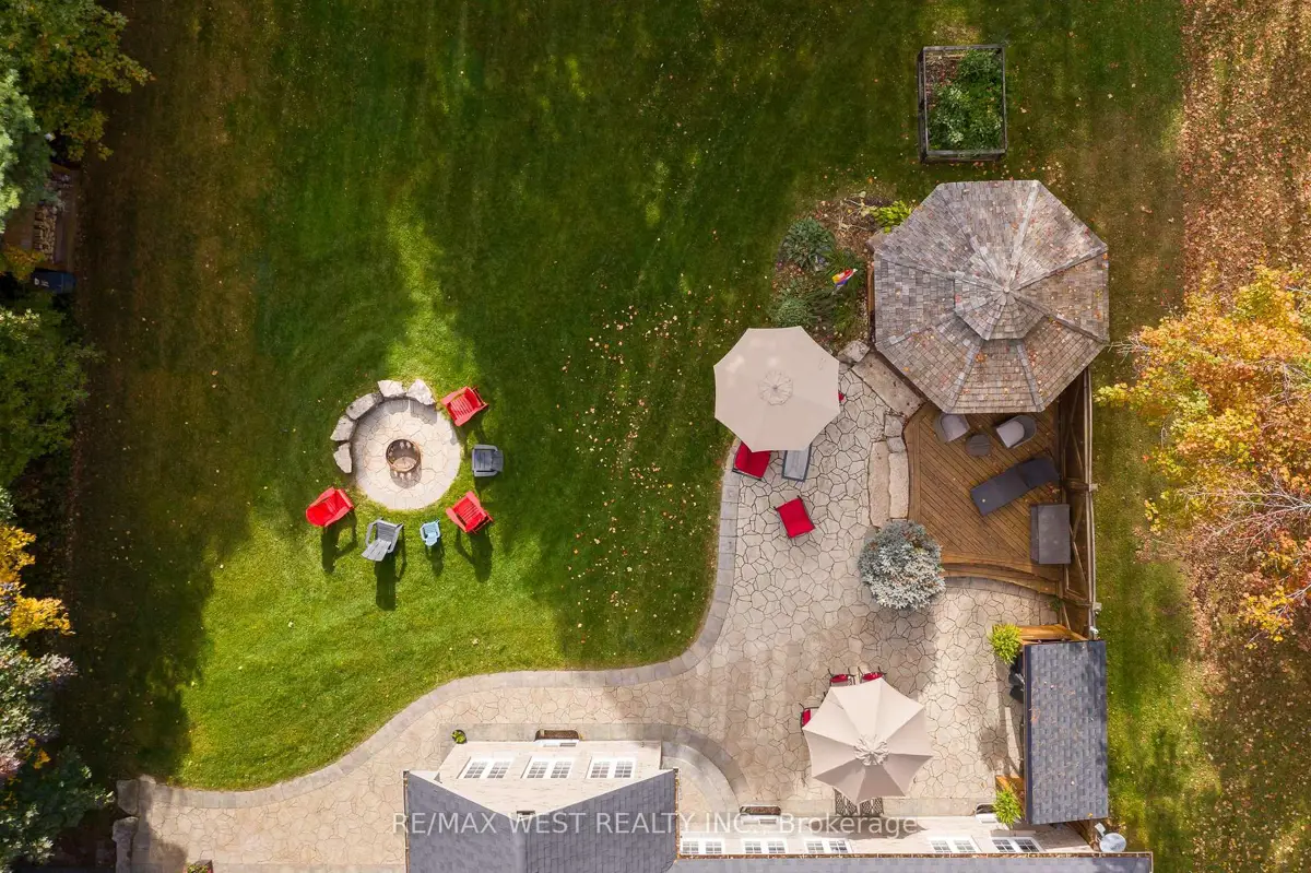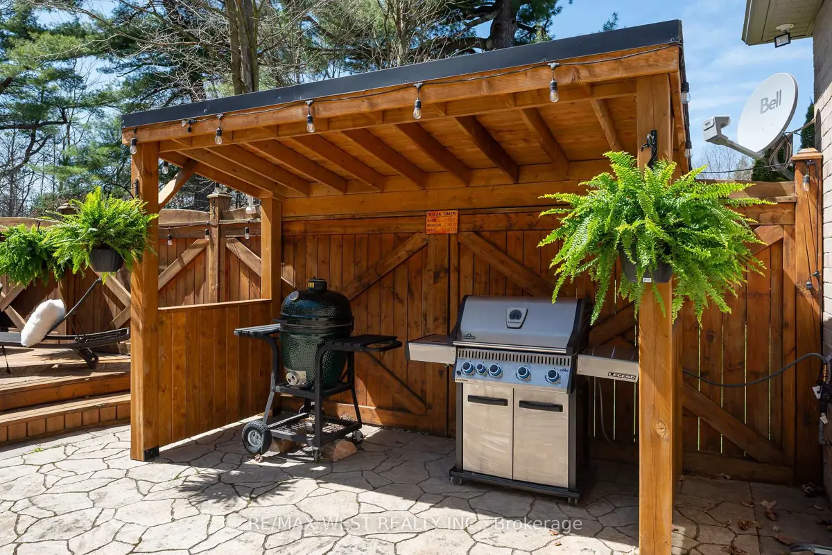 A Custom-Built Masterpiece in the Heart of Erin! This bungaloft offers over 4,300 sq ft of total living space, blending refined craftsmanship with everyday comfort. Pride of ownership is evident in every detail from the hand-stained hardwood floors to the thoughtfully designed indoor and outdoor living spaces. The chef-inspired kitchen features upgraded solid wood cabinetry, a new LG fridge, double oven, gas cooktop, wine fridge, and large centre island perfect for gathering with family & friends. The adjoining dining & sitting areas share a stunning two-way gas fireplace. Step outside to discover your private retreat complete with a sheltered BBQ area(with two gas lines), screened-in gazebo with powered lighting and ceiling fan, multiple seating areas, elegant fence-line lighting, rough-in for future hot tub, and a fire pit with wood storage all overlooking the tranquil pond beyond. The living room offers cathedral ceilings, a second view of the two-way fireplace, and surround sound system that extends to the patio for effortless indoor-outdoor entertaining. The main floor primary suite is a true haven, featuring a spa-like 5-pc ensuite with soaker tub, walk-in shower, double sinks, and walk-in closet. The main level also includes a stylish home office, 2-piece bath, and convenient laundry room with access to the 4-car insulated garage divided into two sections, including a heated area. Upstairs, you'll find three beautifully appointed bedrooms and a 5-pc bath ideal for family or guests. The lower level is designed for year-round enjoyment, featuring a games area, wet bar, home theatre with surround sound, gym, 3-piece bath, gas fireplace, and custom lighting. This remarkable home is within walking distance to boutique shops, restaurants, the high school, parks, trails, & more. A Generac generator powers most of the home, offering peace of mind without compromise. A rare opportunity to own a home that perfectly balances luxury, functionality, and small-town charm.