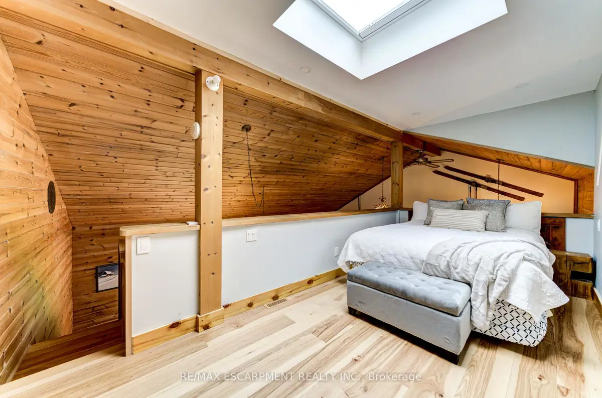 Welcome to your ideal year-round retreat in coveted Blue Mountain-just minutes from the ski hills, the scenic Georgian Trail, and the area's vibrant restaurants and shops. This one-of-a-kind home combines cozy character with modern comfort and offers exceptional potential.The bright, open family room provides the perfect setting for gatherings with family and friends. Above the kitchen, the loft-style primary bedroom feels like a private hideaway, featuring a 4-piece ensuite, walk-in closet, and a serene view of the backyard. The main-floor den adds versatility and can serve as an office, an additional bedroom (currently with a bunk bed), or bonus storage-whatever suits your needs.Step outside to a large, fully fenced backyard oasis designed for both entertaining and unwinding. Enjoy a custom patio, fire pit, and plenty of space to lounge, dine, and play.A survey and building permit are already in place, giving you the option to expand or tailor the home to your vision.Whether you're seeking a full-time residence, a weekend escape, or a smart investment, this Blue Mountain gem truly has it all.