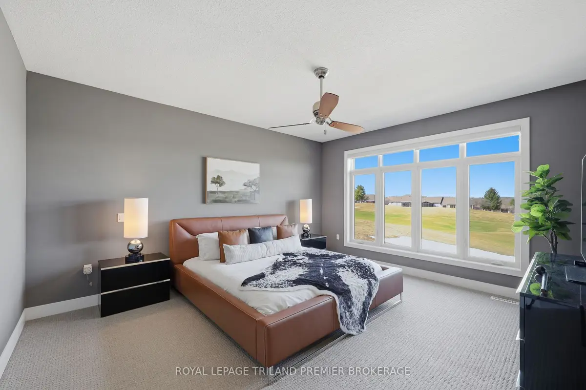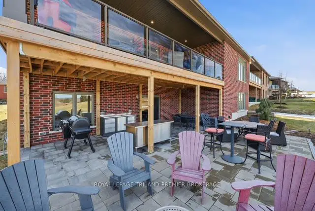 Welcome to the views and lifestyle at 1873 Sandy Somerville, located within the prestigious gated community surrounding RiverBend Golf Course. Tucked away on a quiet dead-end street, this stunning home impresses the moment you walk through the door. Expansive windows frame the great room, capturing breathtaking golf course views from every angle. The main level features a chef's kitchen, dedicated office, beautiful hardwood flooring, solid surface finishes, and high-end fixtures throughout. Just off the great room, step onto the covered upper deck, a true extension of the living space. Glass railings make you feel as though you are floating above the course while taking in the sweeping views. The space includes a TV hookup, BBQ gas quick-connect, and all outdoor furniture as seen during showings, making it ready to enjoy from day one. The garage is a dream for car enthusiasts, featuring high-lift doors, a car hoist, EV charger, and golf cart space. A convenient main floor laundry/pantry and powder room greet you from the garage entrance. The primary suite enjoys incredible course views from bed and a luxurious ensuite with double vanity and walk-in shower system. A guest bedroom with ensuite and generous closets completes the main level. The lower level offers 9ft ceilings, two additional bedrooms, a 4-piece bath, large storage, and a spacious recreation area with continued course views. Walk out to the covered patio with outdoor kitchen and landscaped grounds. All upper and lower patio furniture and outdoor tv is included - perfect for entertaining or a little friendly heckling of golfers passing by. Loaded with upgrades and inclusions. Detailed list available upon request. BREAKDOWN OF TOTAL RENT - BASIC LAND LEASE $1.549.81 AND MONTHLY $646.92.