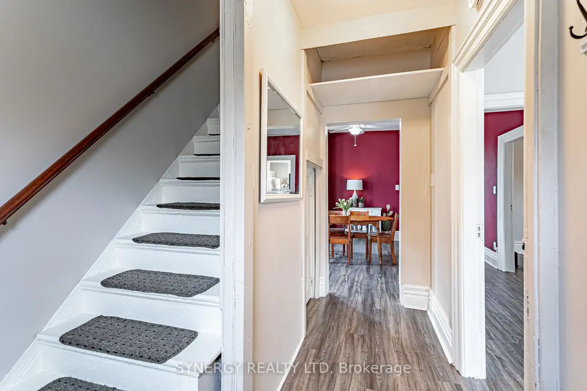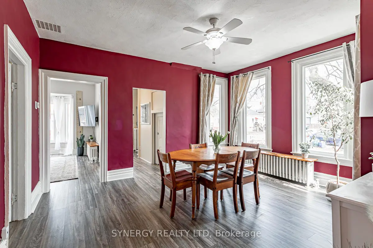 Discover the charm of this beautifully maintained century home in the heart of Sarnia. Offering 2+1 bedrooms, plus an adorable nursery for your wee one and 2 recently redone bathrooms, this home blends character with comfort. The main floor features inviting living spaces with original details, soaring ceilings and plenty of natural light. The kitchen has been redone with newer cabinets providing plenty to space to whip up a family diner to serve in the massive dining room making entertaining a breeze. The unfinished basement offers excellent potential for future finishing, storage, or a hobby space. Outside, enjoy a summer evening in the quaint , low-maintenance yard featuring a shady gazebo area for relaxing in the shade and still space for the kid's swing set not to mention the rare convenience of two laneways for parking. Located just steps from downtown shops, restaurants, beautiful Paul Blundy waterfront park and amenities, you'll love the walkable lifestyle this home provides. Full of warmth, this home is ready to welcome its next owner perfect for first-time buyers, young families, or anyone seeking a charming downtown gem. New Windows and exterior doors (2021) New On Demand combination boiler/water heater 2026. New Floor Flooring 2026 (Main Floor)